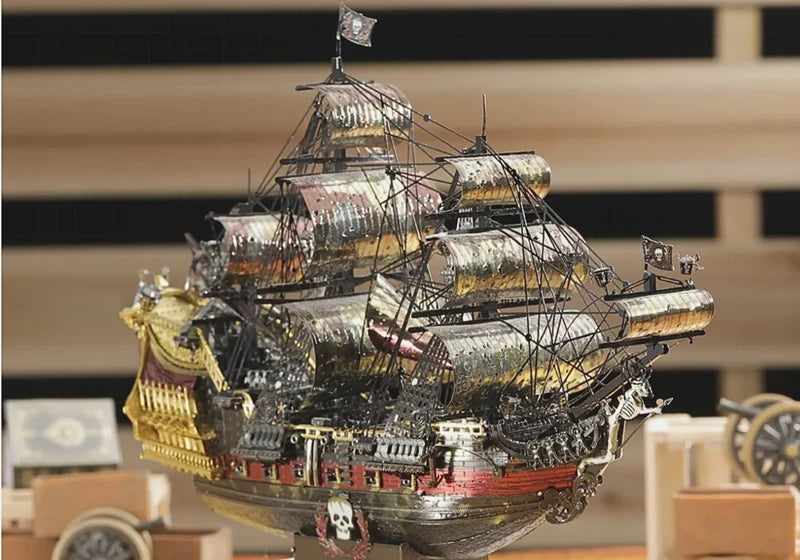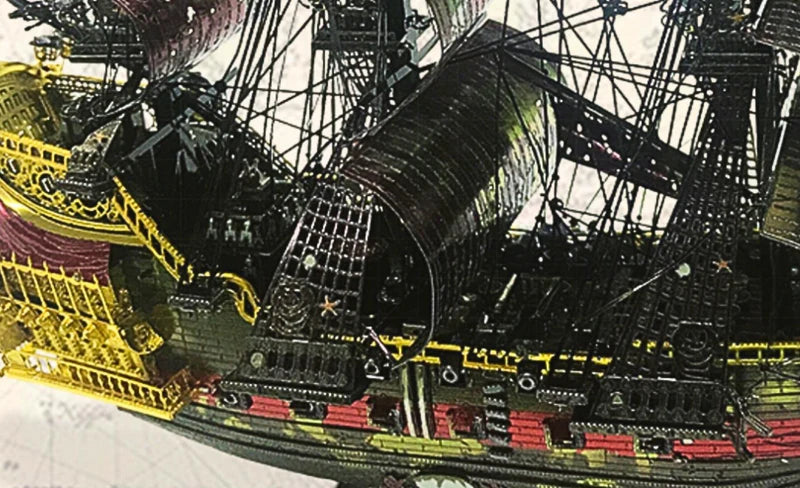 Det ryktes at Queen Anne's hevn seilte tungt lastet med rikdom og skatter. Modellen har detaljer som det imponerende skroget og de omhyggelig detaljerte kanonene, noe som sikrer en autentisk gjengivelse av skipets formidable design.