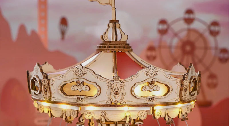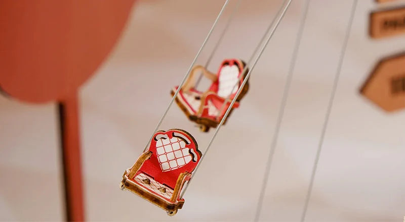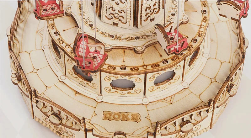 Med utskårne flygende stoler i rødt og hvitt, disse elementene er små, men likevel svært detaljerte