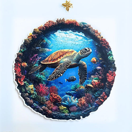 Dette puslespillet var litt vanskeligere enn jeg forventet med alle koralldetaljene, men det var så givende å bli ferdig. Skilpadden i midten er favorittdelen min!
