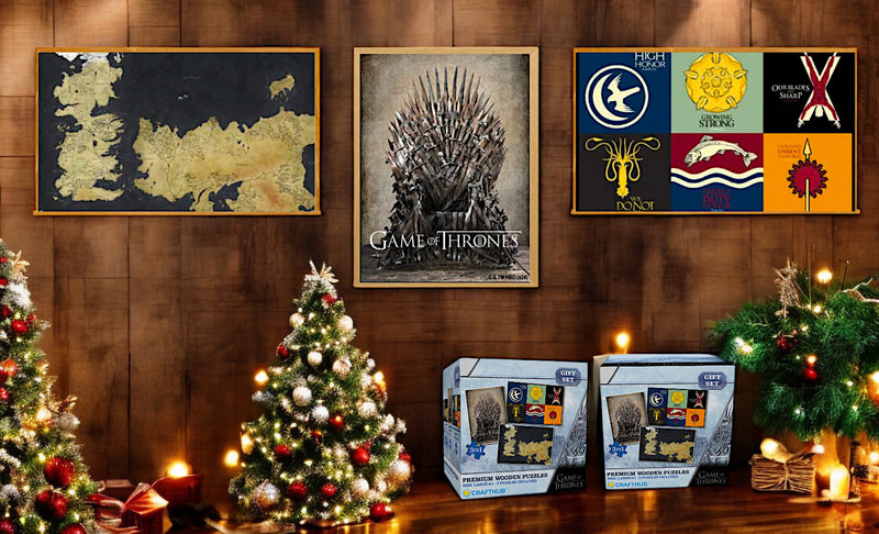 Pusle sammen intrigene og makten i Westeros med unike brikker formet som Jon Snow, Daenerys Targaryen, Tyrion Lannister, Cersei Lannister, skrekkulver, drager og jerntronen.