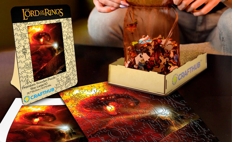 Med originale kunstverk direkte fra den episke sagaens filmatiske kilde, feirer denne puslespillserien foreningen av autentisk 'Ringenes Herre'-grafikk med det ypperste innen puslespillkunst.