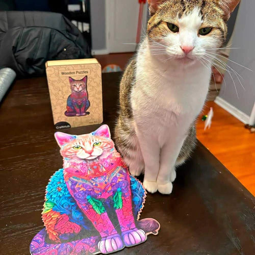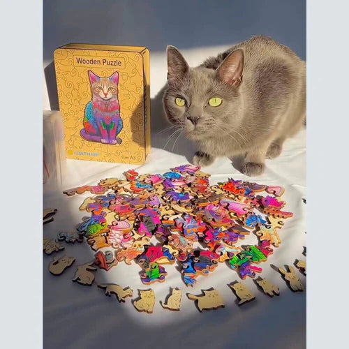 Gå på oppdagelsesferd i en omfattende feiring av kattens skjønnhet med puslespillet vårt i tre, som viser over 50 unike katteraser fra hele verden.