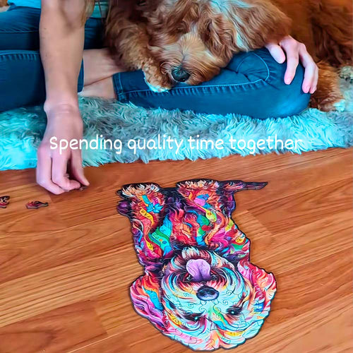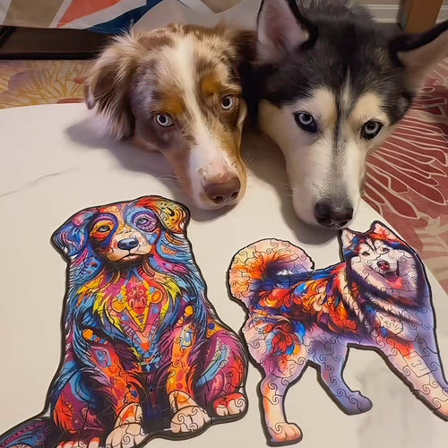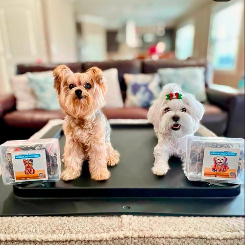 Trebrikker av høy kvalitet i forskjellige hundeformer var enkle å manipulere uten å bekymre seg for at de skulle falle fra hverandre som et tradisjonelt puslespill.
