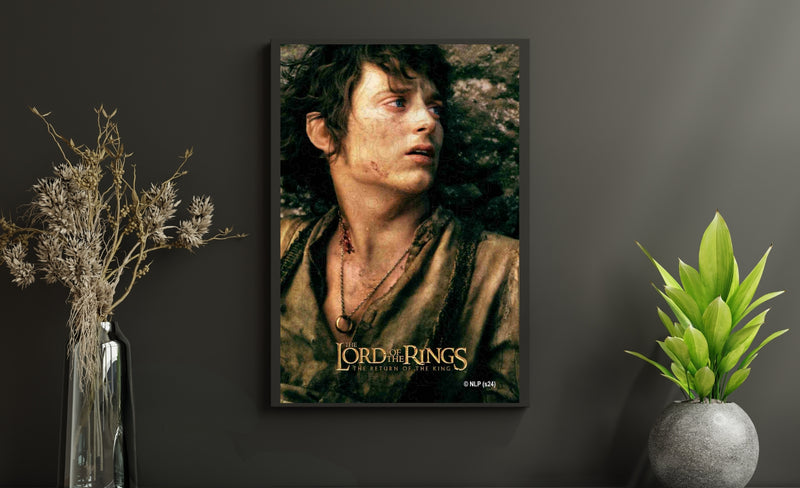 "Jeg kan ikke bære den for deg, men jeg kan bære deg." Dette puslespillet fanger den rå besluttsomheten og den tunge byrden i Frodos ansikt når han nærmer seg slutten av den strabasiøse reisen til Mount Doom.