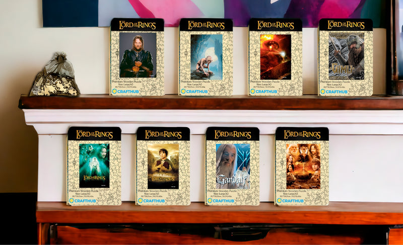 Med originale kunstverk direkte fra den episke sagaens filmatiske kilde, feirer denne puslespillserien foreningen av autentisk 'Ringenes Herre'-grafikk med det ypperste innen puslespillkunst.