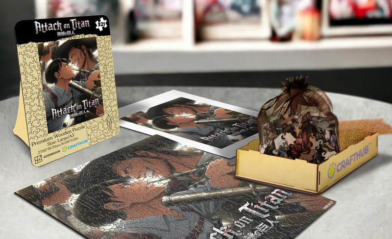 Avansert UV-trykkteknologi sikrer en lys og levende Attack on Titan-puslespilldesign som blir til en imponerende kunstutstilling når det er ferdig.