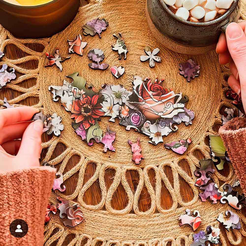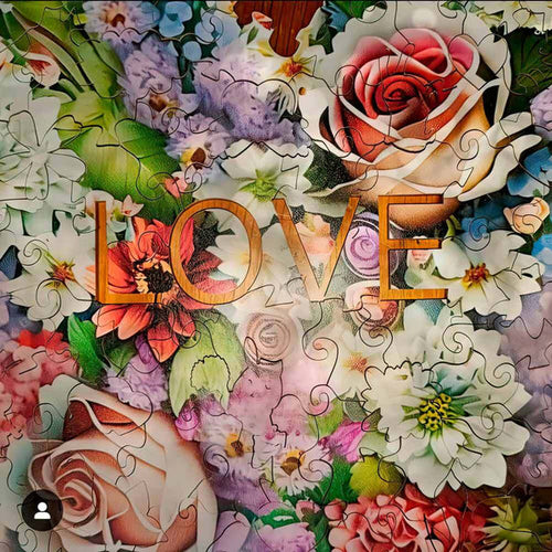 Når du legger puslespillet, vil du oppdage elementer av kjærlighet, fra de dristige «L,O,V,E»-bokstavene til de skjønne hjerteikonene og blomstrende blomstermotivene.