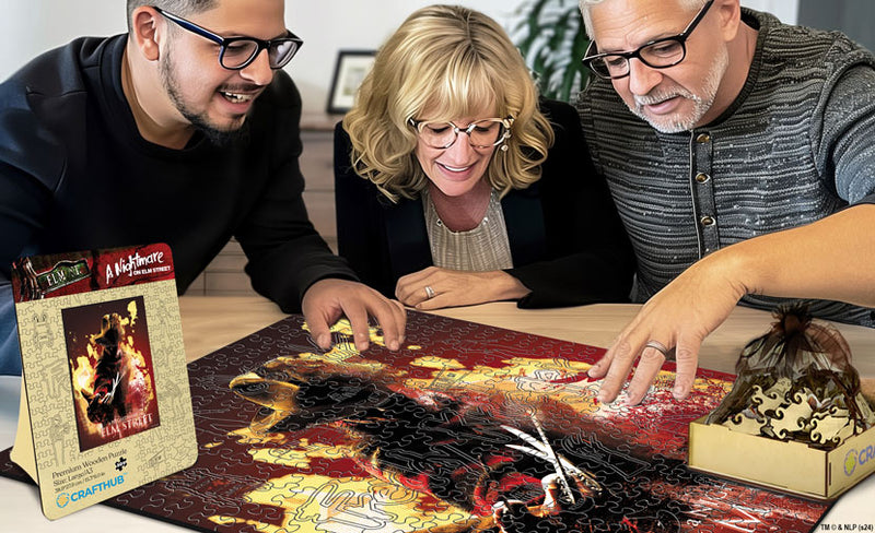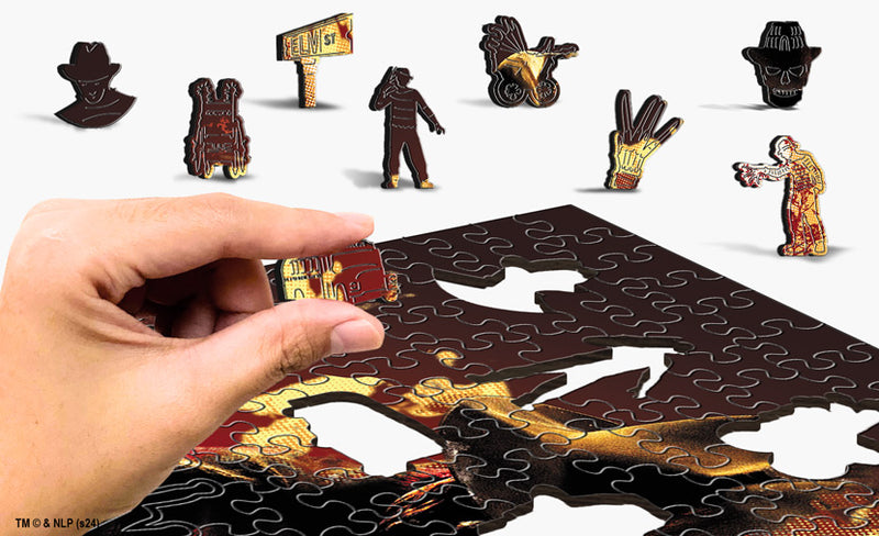 For hvert stykke avslører du gradvis de uhyggelige gatene i Springwood, Freddy Kruegers sylskarpe hanske og de marerittaktige scenene som visker ut grensen mellom drøm og virkelighet i Elm Street.