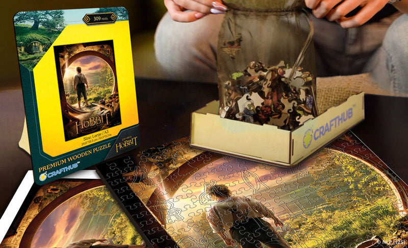 Dra på en episk reise gjennom Midgard med puslespillbrikker formet som Bilbo, Gandalv, Gollum, dragen Smaug, Den ene ringen og legendariske symboler fra Hobbiten.