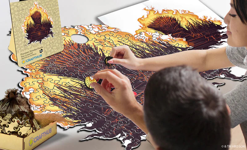 Med original kunst direkte fra den episke sagaen feirer denne puslespill-serien kombinasjonen mellom House of the dragons og puslespillkunst.