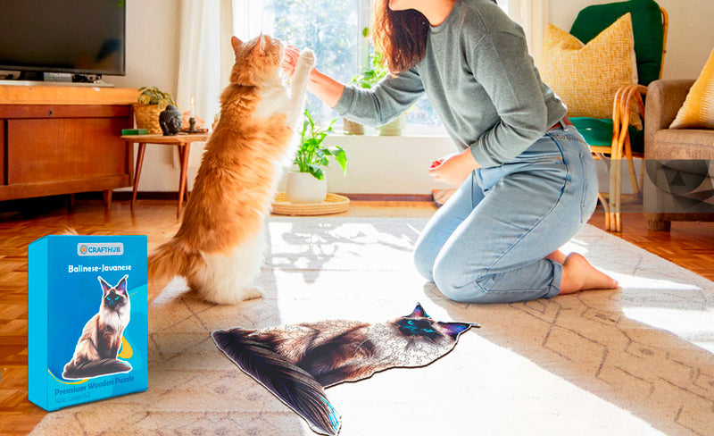 Gå på oppdagelsesferd i en omfattende feiring av kattens skjønnhet med puslespillet vårt i tre, som viser over 50 unike katteraser fra hele verden.