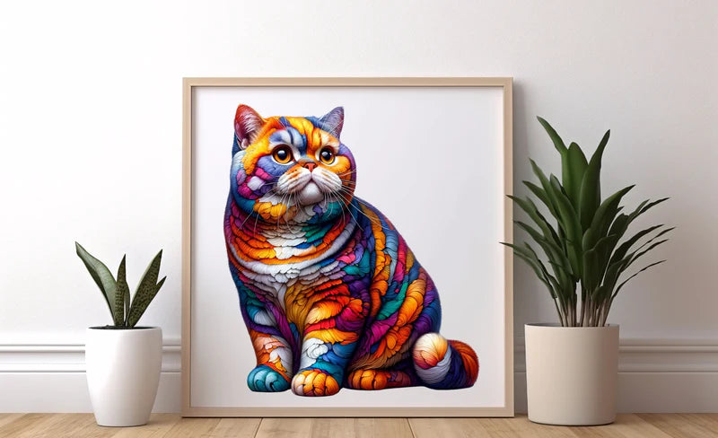 Avansert UV-trykkteknologi sørger for et lyst og levende kattedesign som blir til en fantastisk kunstutstilling når den er ferdig.