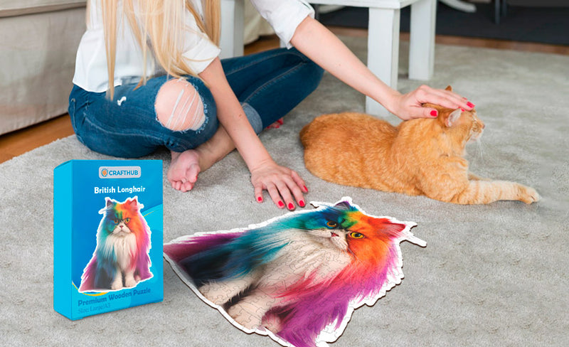 Gå på oppdagelsesferd i en omfattende feiring av kattens skjønnhet med puslespillet vårt i tre, som viser over 50 unike katteraser fra hele verden.
