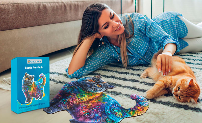 Gå på oppdagelsesferd i en omfattende feiring av kattens skjønnhet med puslespillet vårt i tre, som viser over 50 unike katteraser fra hele verden.