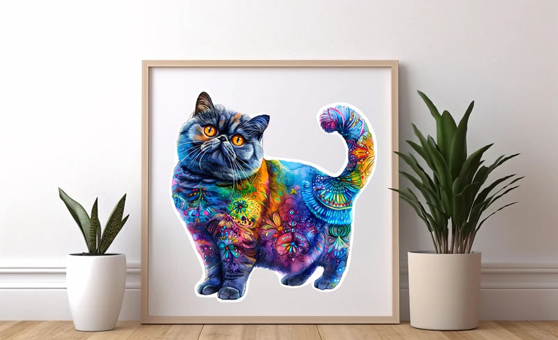 Avansert UV-trykkteknologi sørger for et lyst og levende kattedesign som blir til en fantastisk kunstutstilling når den er ferdig.