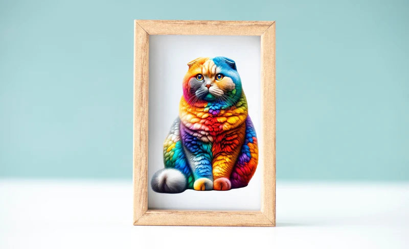 Avansert UV-trykkteknologi sørger for et lyst og levende kattedesign som blir til en fantastisk kunstutstilling når den er ferdig.