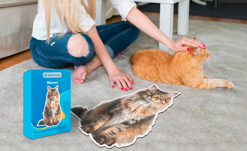 Gå på oppdagelsesferd i en omfattende feiring av kattens skjønnhet med puslespillet vårt i tre, som viser over 50 unike katteraser fra hele verden.