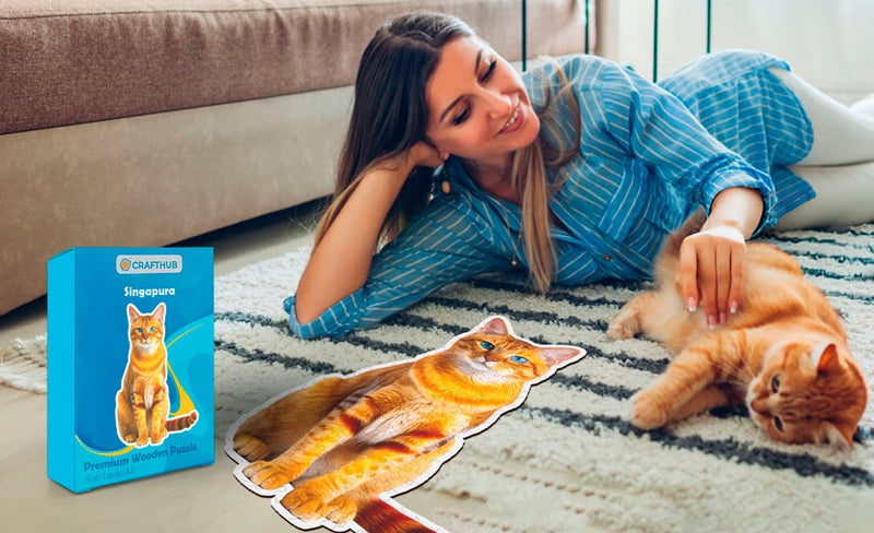 Gå på oppdagelsesferd i en omfattende feiring av kattens skjønnhet med puslespillet vårt i tre, som viser over 50 unike katteraser fra hele verden.