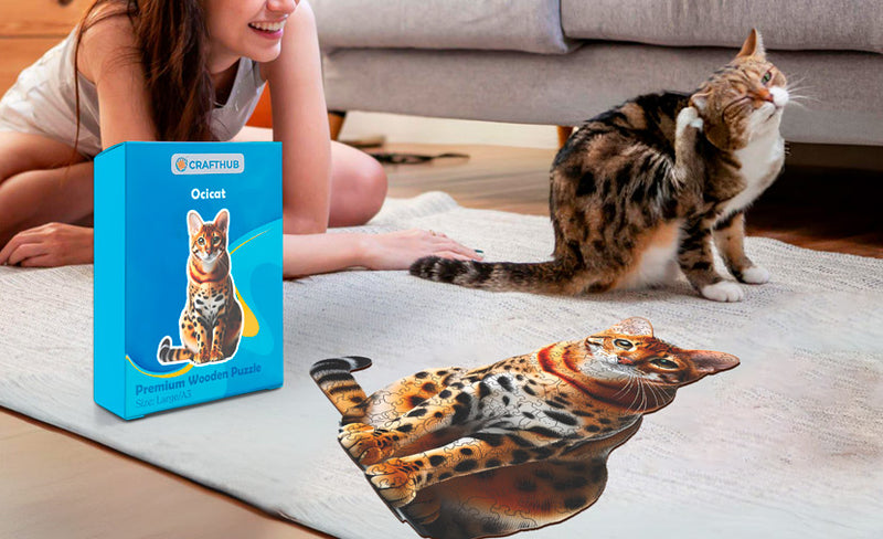 Gå på oppdagelsesferd i en omfattende feiring av kattens skjønnhet med puslespillet vårt i tre, som viser over 50 unike katteraser fra hele verden.