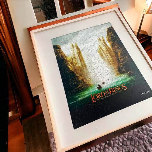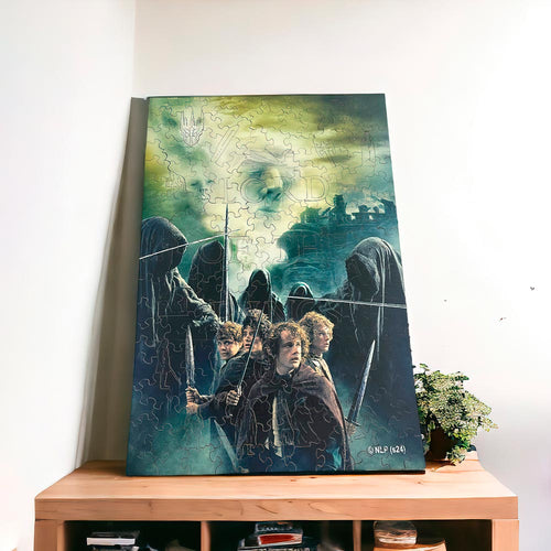 Med originale kunstverk direkte fra den episke sagaens filmatiske kilde, feirer denne puslespillserien foreningen av autentisk 'Ringenes Herre'-grafikk med det ypperste innen puslespillkunst.