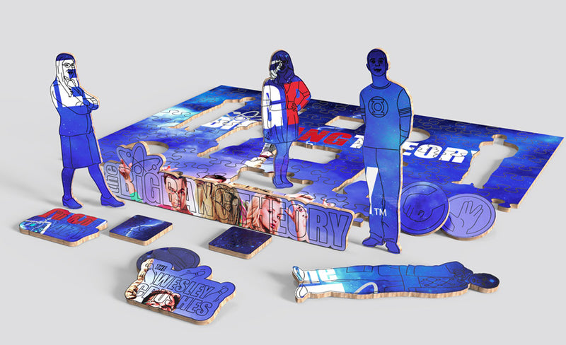 Feir seriens genialitet med unikt formede puslespillbrikker som Sheldon, Penny, DNA-tråder, den ikoniske sofaen, vitenskapelige elementer, Bazinga-talebobler og mye mer.