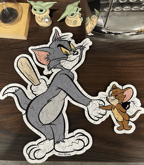 Disse Tom & Jerry-puslespillene er en perfekt balanse mellom utfordrende og herlig. Brikkenes former er morsomme, og jeg smiler hver gang jeg finner en «spesiell» Tom-form som er relatert til temaet for puslespillet. Dette er mitt tredje puslespill fra denne produsenten, og jeg har elsket alle tre