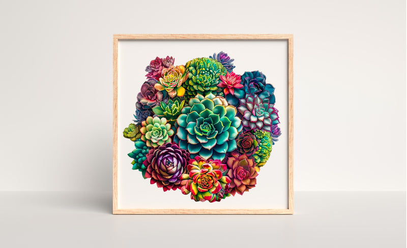 Når du legger puslespillet, vil du oppdage utallige brikker formet som ulike sukkulente planter, som rosetter, kaktuser og mye mer.