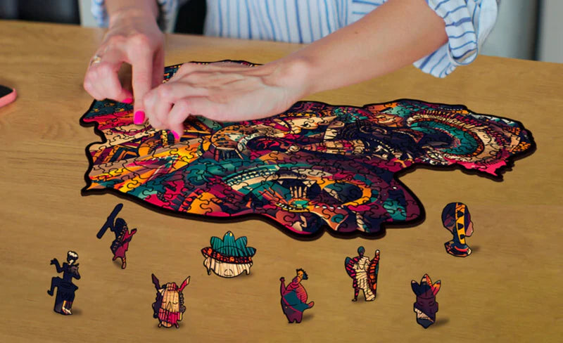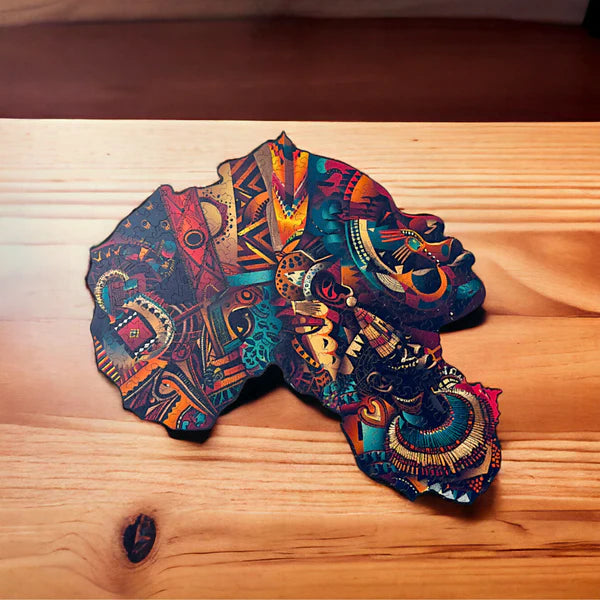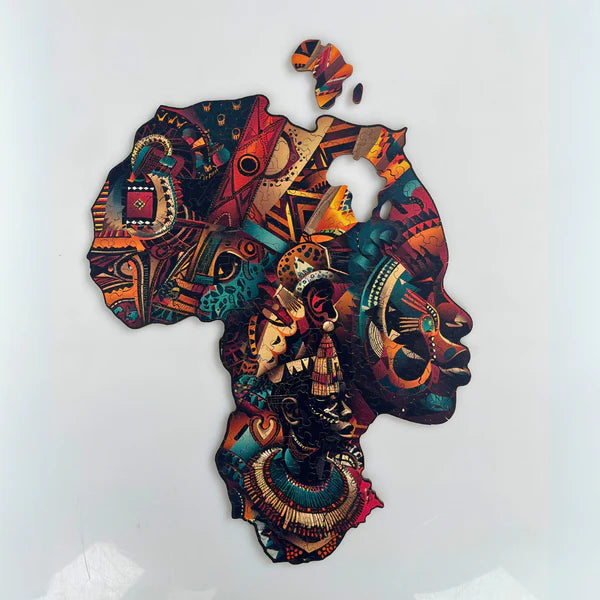 Dykk ned i Afrikas kulturarv med dette puslespillet. Puslespillet inneholder unike figurer som djembetrommer, dashiki-skjorter, nasjonalflagg og forskjellige dyr. Hver brikke er en reise gjennom kontinentets levende tradisjoner.