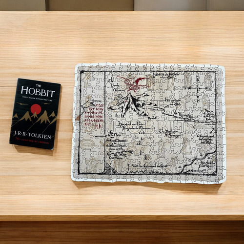 Dra på en episk reise gjennom Midgard med puslespillbrikker formet som Bilbo, Gandalv, Gollum, dragen Smaug, Den ene ringen og legendariske symboler fra Hobbiten.