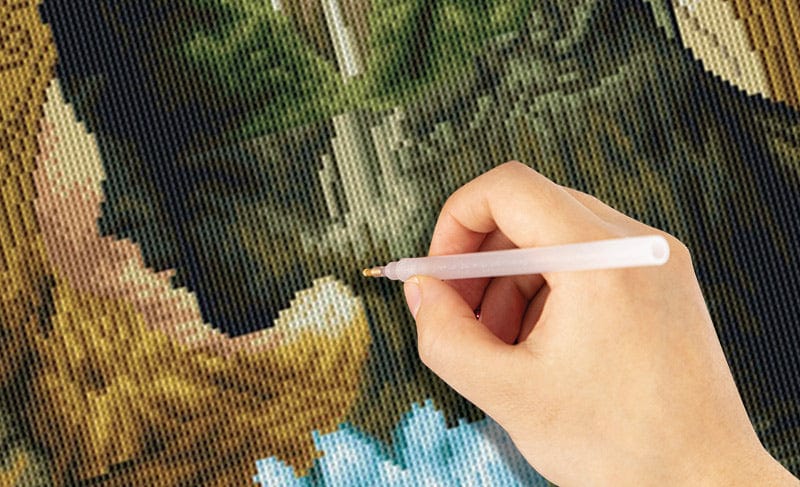 Complete All-in-One Kit: Fabric Canvas, Resin Diamonds, Stylus Pen, Wax, Diamond Tray & Separator, Guide.