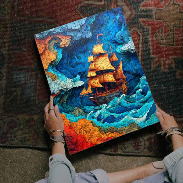 Et absolutt spennende puslespill! De livlige fargene og dramatiske bølgene ga følelsen av å være på et ekte eventyr. Det står nå stolt utstilt i stua mi.