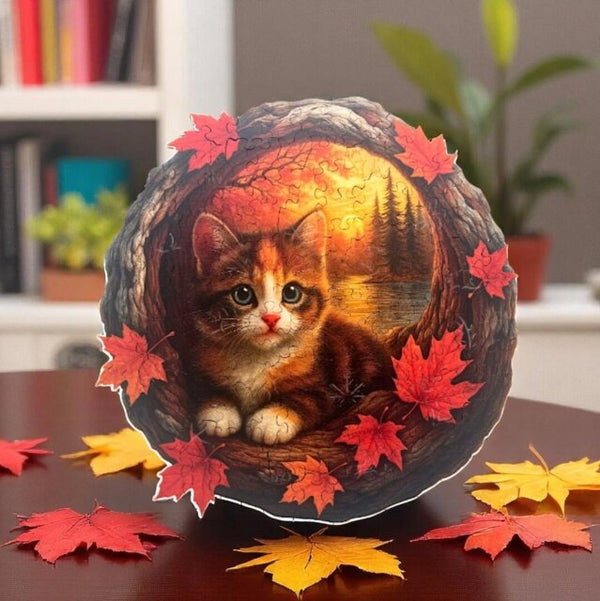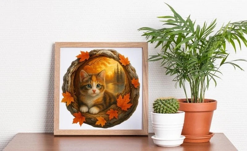 Jeg kunne ikke slutte å smile mens jeg satte dette sammen. Høstfargene og den søte kattungen er en perfekt kombinasjon. Jeg tror jeg skal ramme det inn – det er så vakkert.