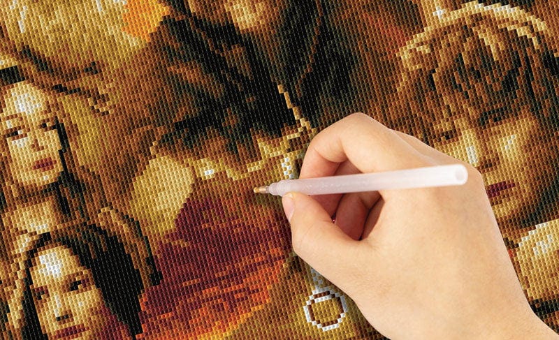 Complete All-in-One Kit: Fabric Canvas, Resin Diamonds, Stylus Pen, Wax, Diamond Tray & Separator, Guide.