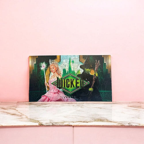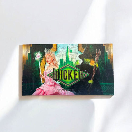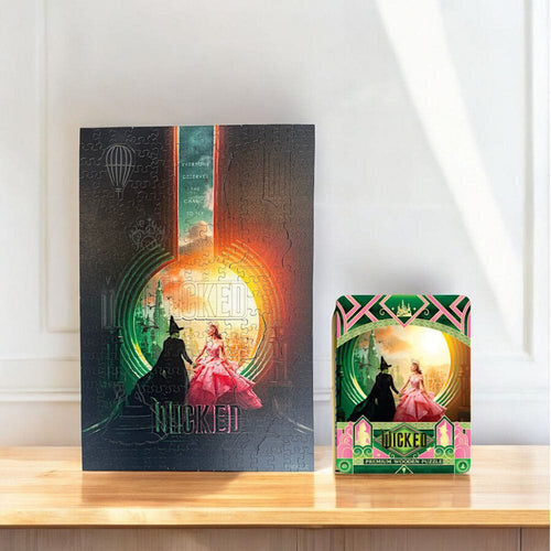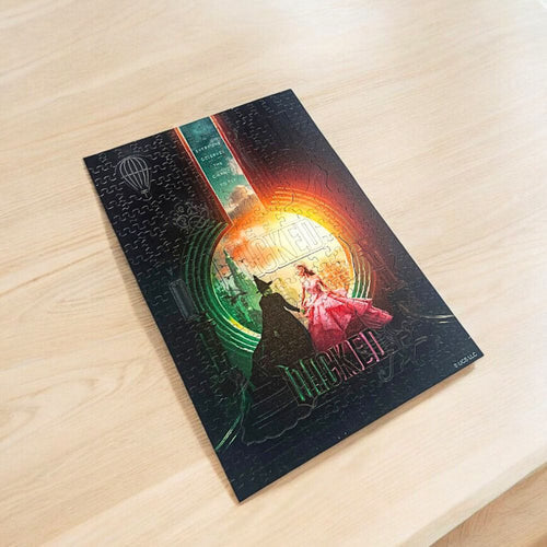 Med avansert UV-print teknologi viser dette puslespillet de levende grønne fargene og de intrikate detaljene i Smaragdbyen. Dette gir liv til den fengslende reisen til Elphaba og Glinda.